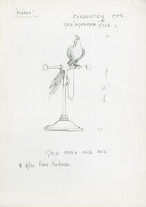 Elizabeth Bury; prop design; Gold Perch and Bird; GFO; 1984; L'Incoronazione di Poppea
